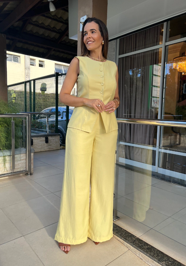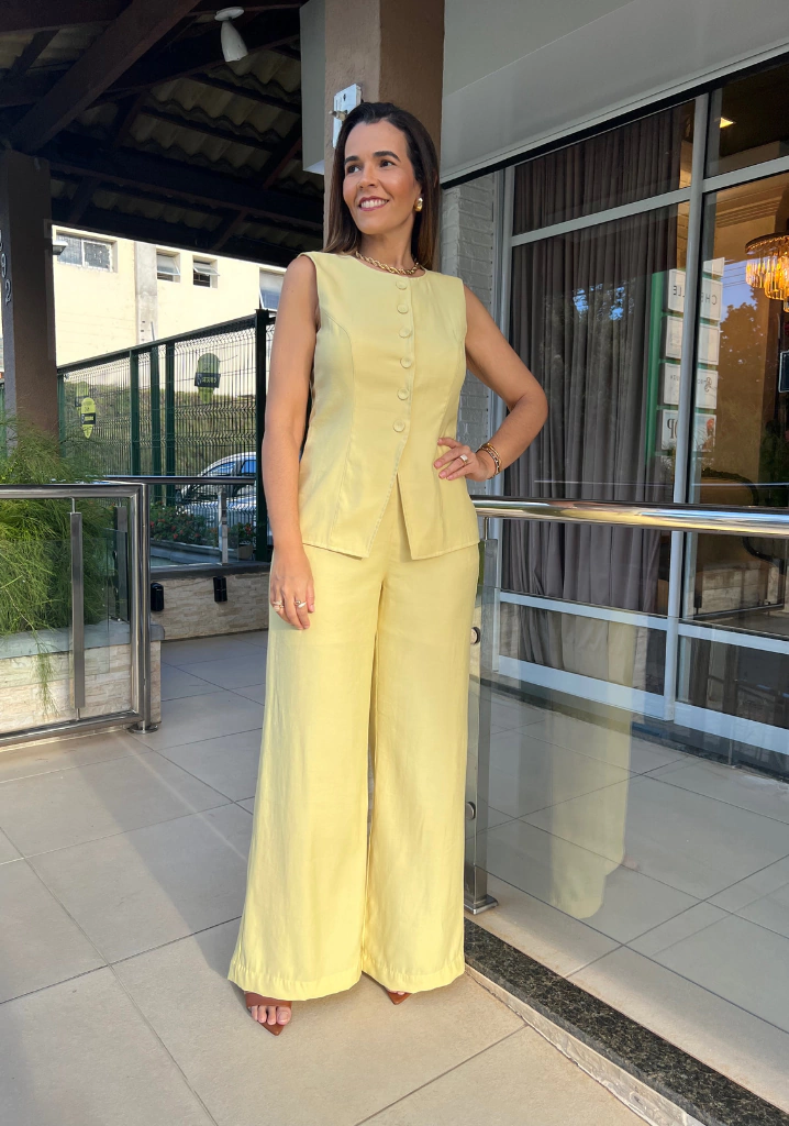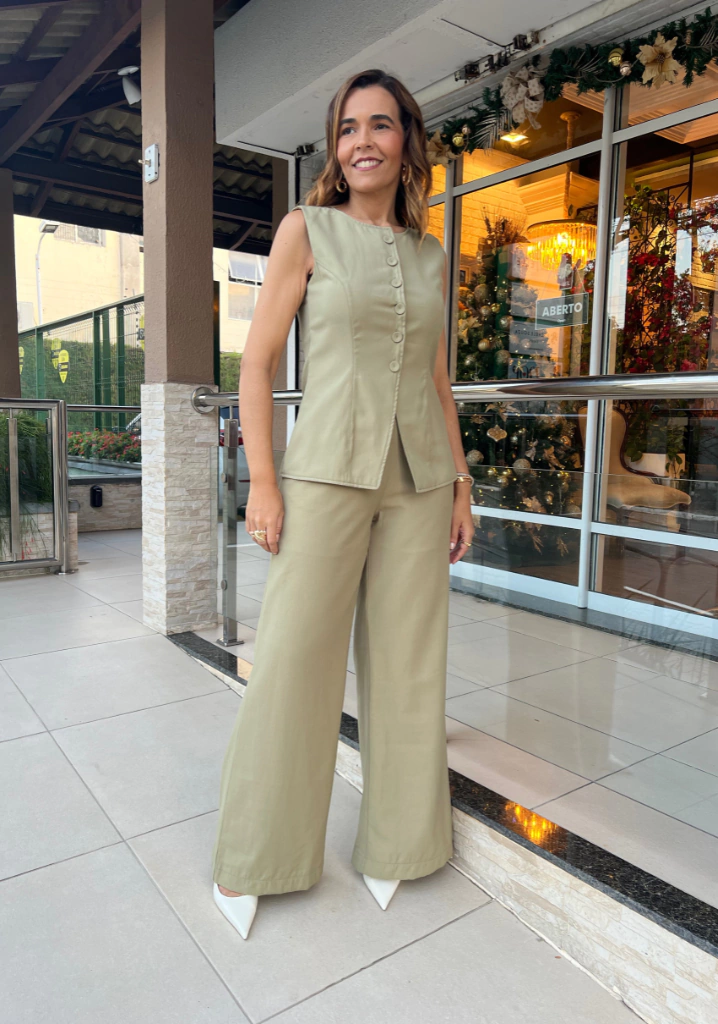 Confeccionada em uma viscose encorpada e toque macio, possui botões na frente e é mais alongada. Sua cor rosa bebê é tendência dentre os tons pastéis.