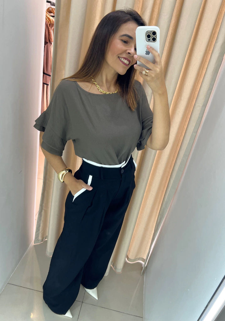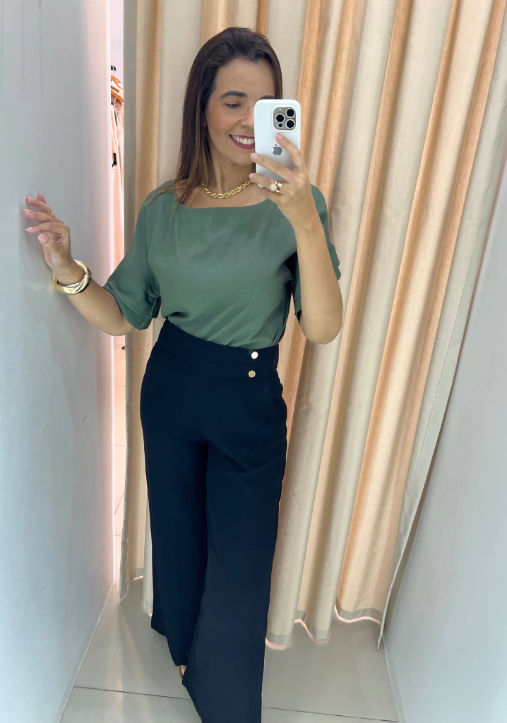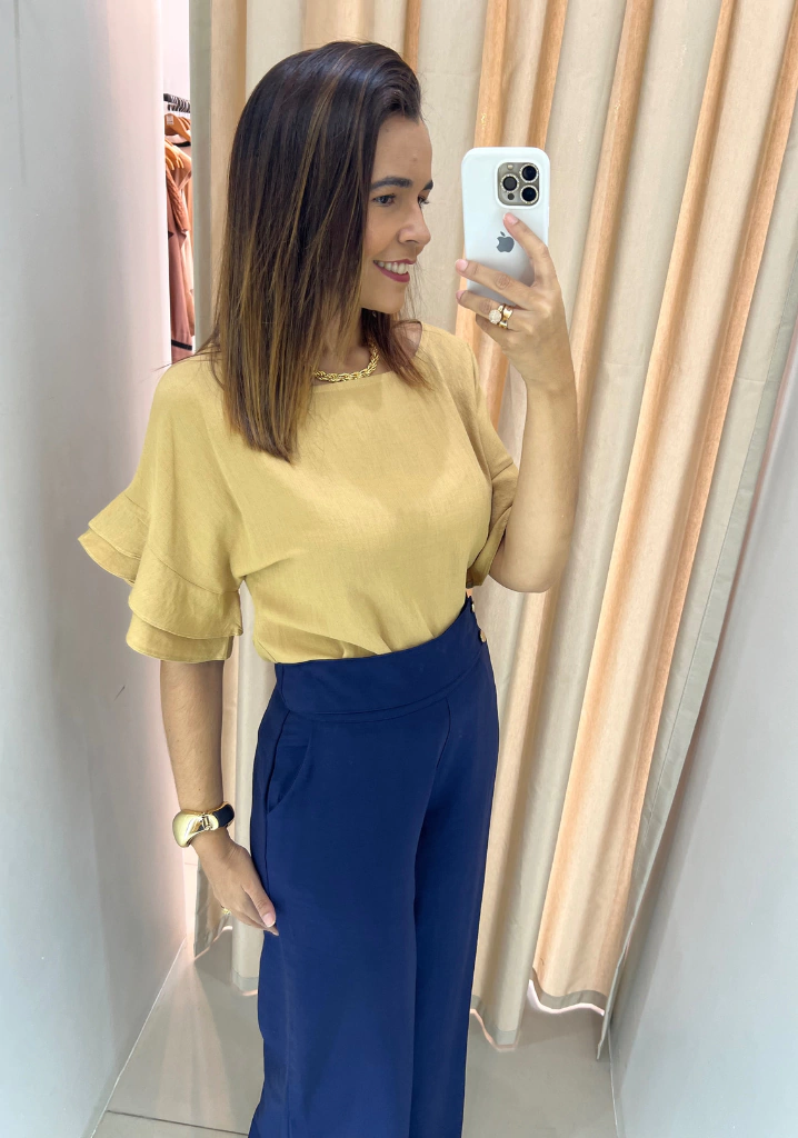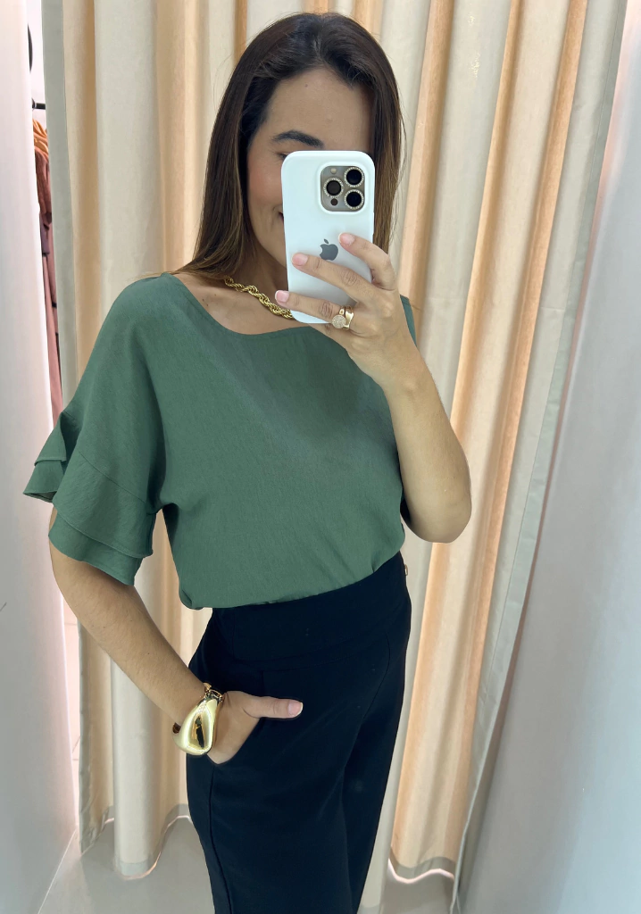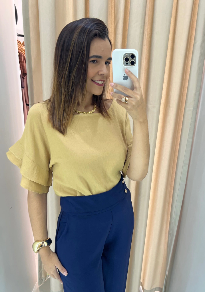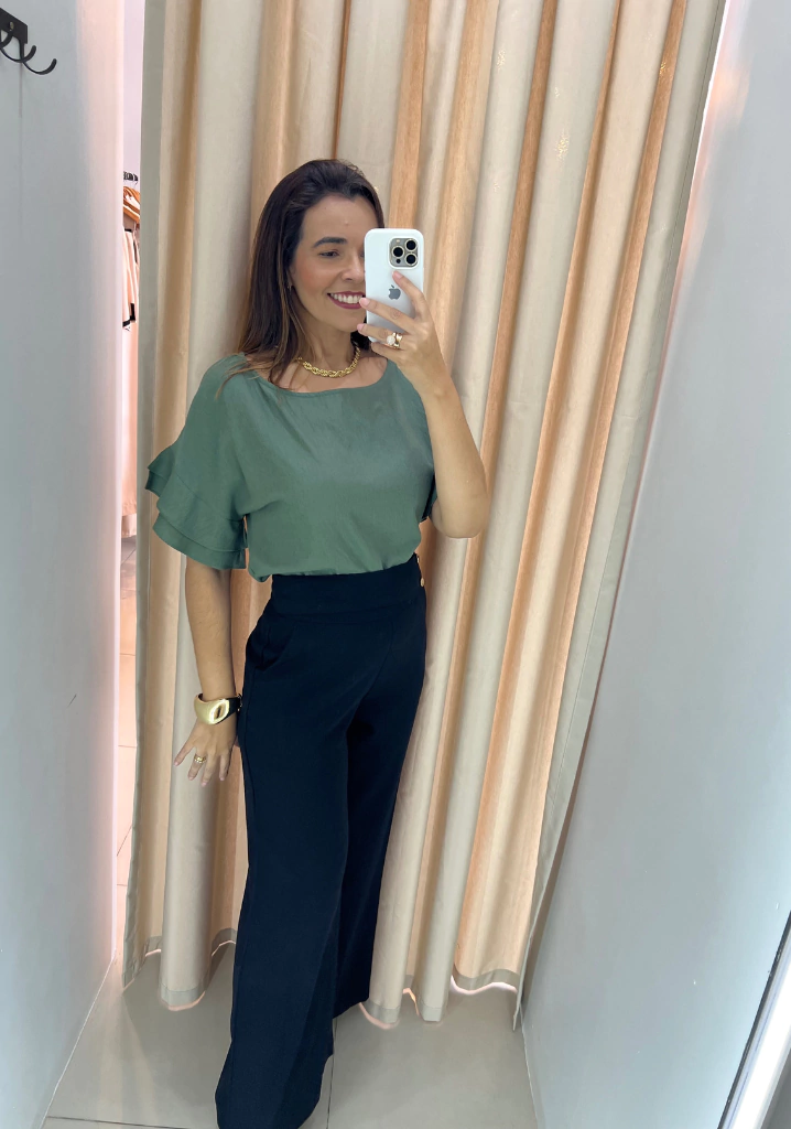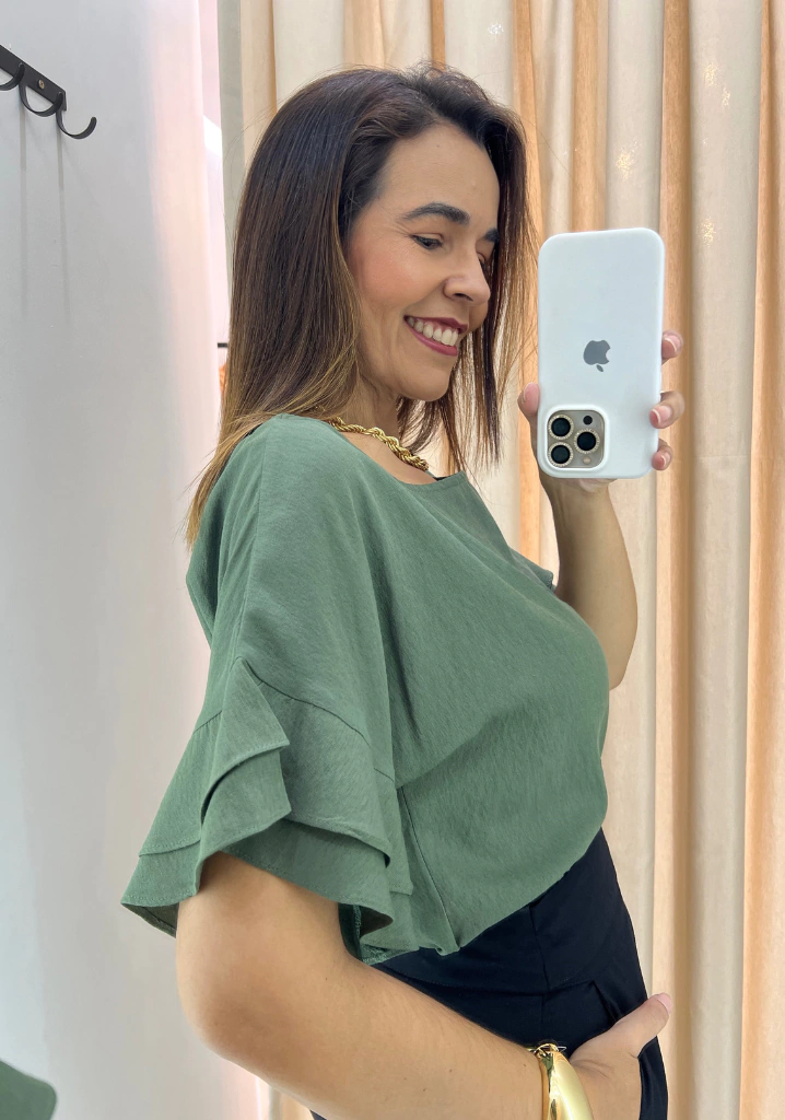 A Blusa Babado Manga é a peça que traz delicadeza e charme ao seu visual. Confeccionada em viscose leve, ela destaca-se pelo babado sofisticado nas mangas e pela gola canoa, que valoriza o colo com elegância. Versátil e confortável, é perfeita para ocasiões especiais ou para dar um toque feminino ao dia a dia. Aposte nela para um look cheio de estilo e frescor!