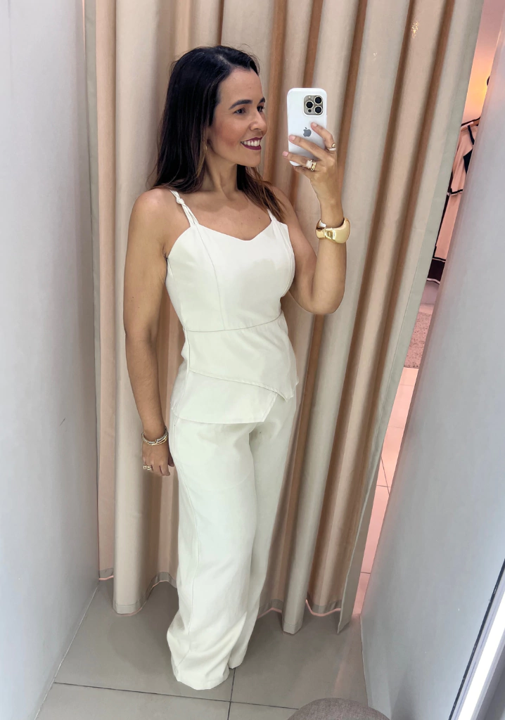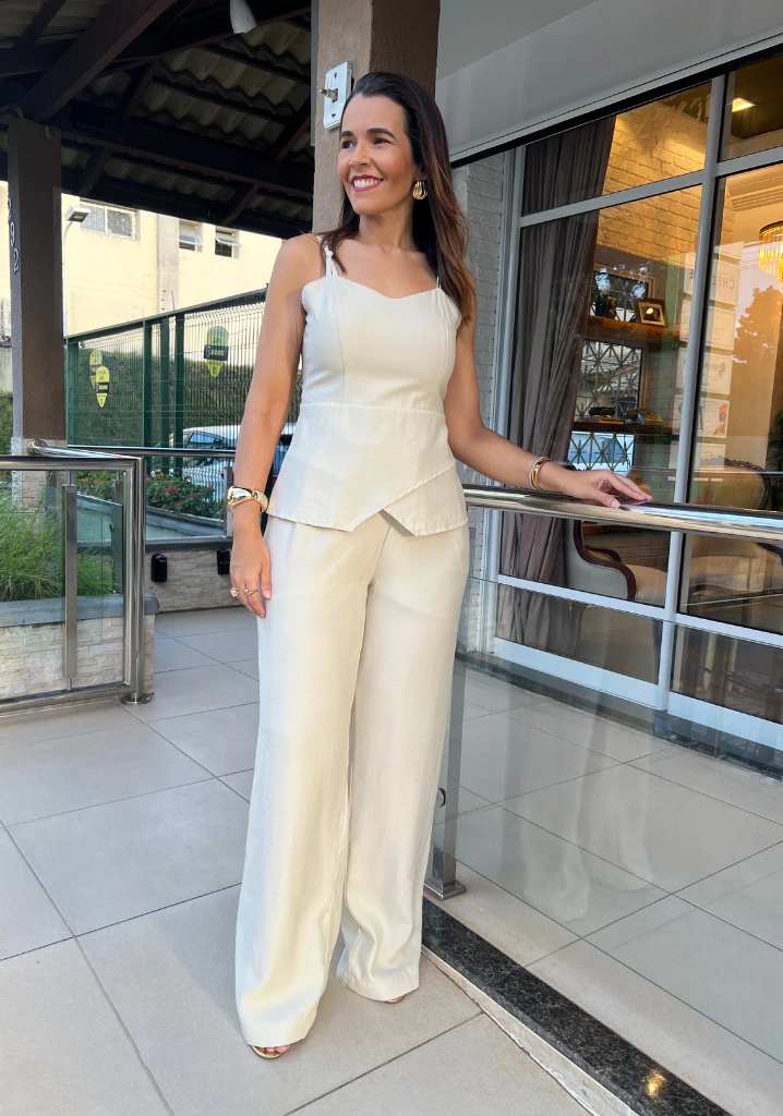 O fechamento é feito por zíper e botão de metal nas costas, garantindo ajuste perfeito e um acabamento refinado. Ideal para compor looks elegantes para o dia a dia ou eventos especiais, combina perfeitamente com peças de alfaiataria ou jeans, oferecendo versatilidade e modernidade.