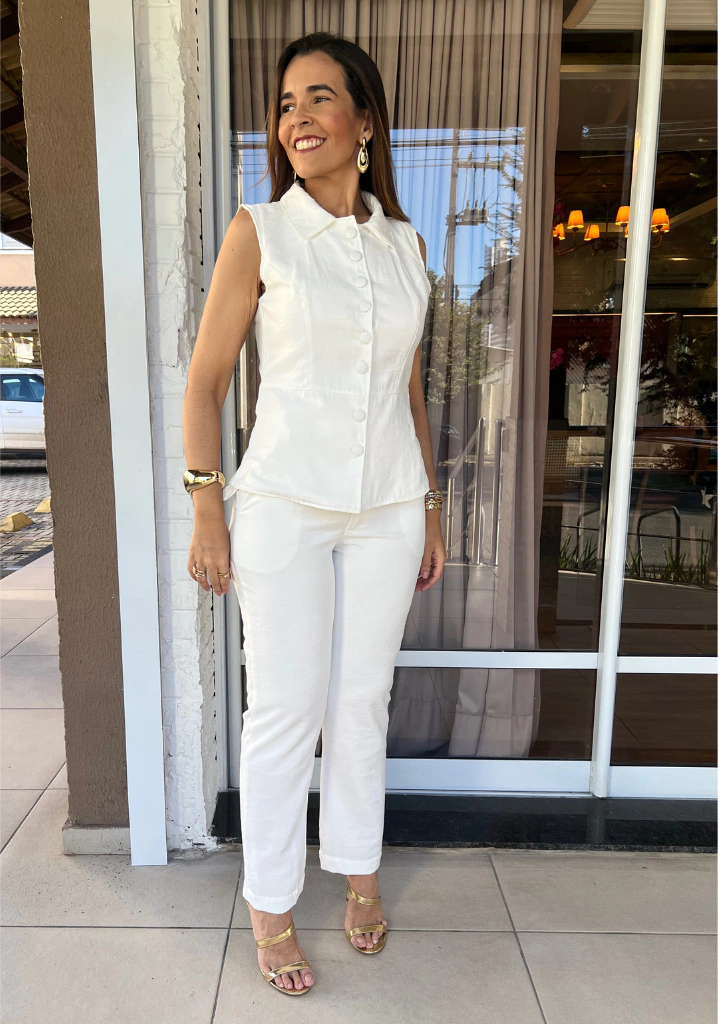 Blusa Elis Alfaiataria é a peça perfeita para quem busca elegância e conforto em um só look. Confeccionada em tecido leve e com acabamento impecável, essa blusa estilo camisaria sem manga traz um toque sofisticado com seu botão coberto que valoriza cada detalhe. Ideal para diversas ocasiões, ela combina facilmente com saias, calças ou shorts, garantindo um visual moderno e refinado. Invista em estilo e versatilidade com a Blusa Elis Alfaiataria! Composição: tecido de alta qualidade para caimento perfeito.