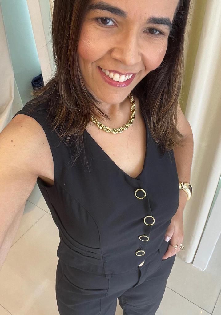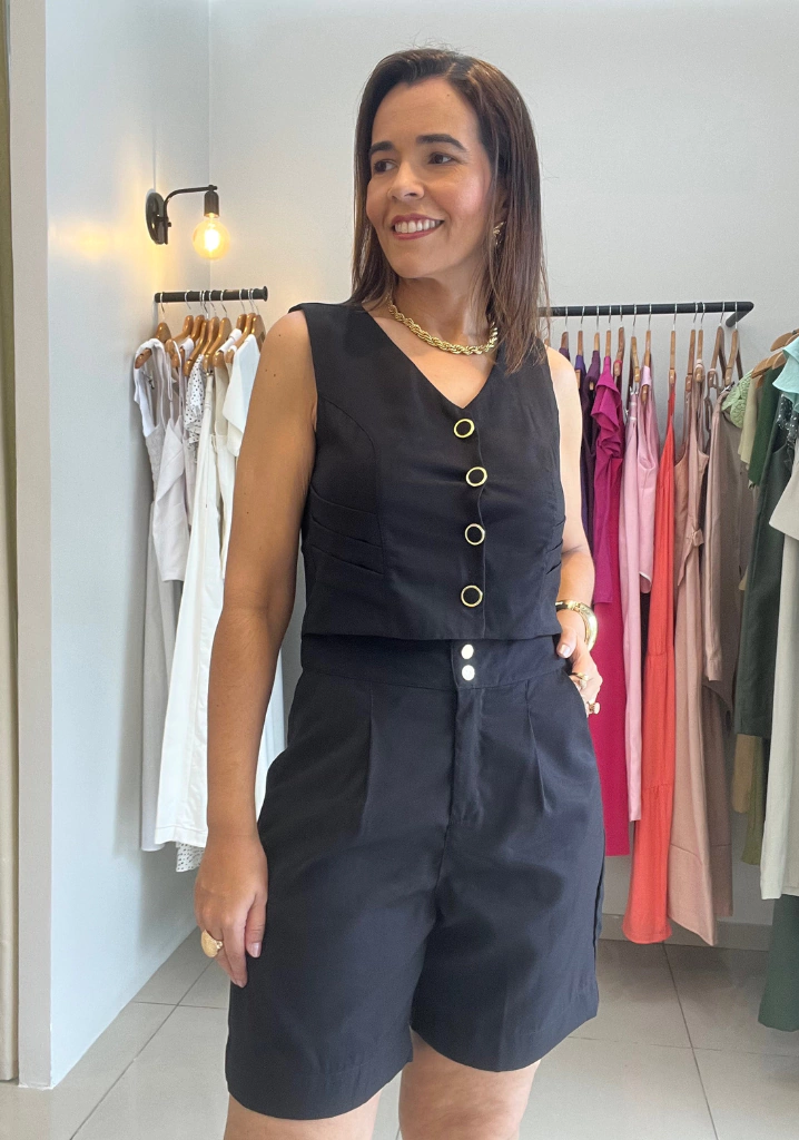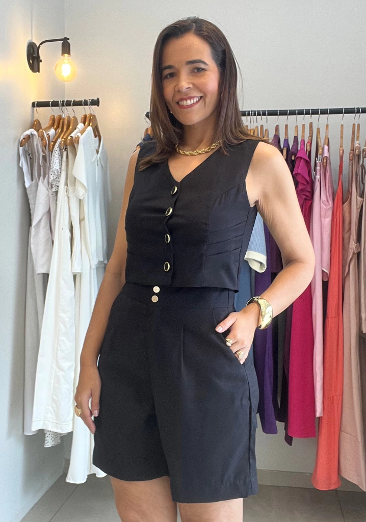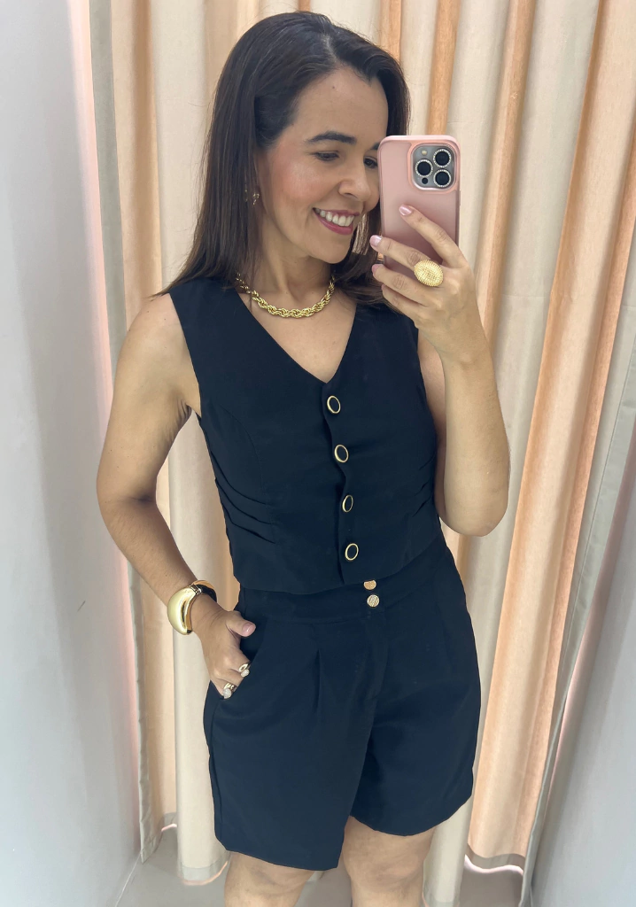 A Blusa Hilda Alfaiataria é a peça que faltava para elevar seu guarda-roupa com estilo e sofisticação. Com design estilo colete, ela traz botões cobertos e um detalhe dourado que adiciona um toque de luxo discreto. O drapeado na lateral valoriza a silhueta, criando um caimento perfeito para qualquer ocasião. Versátil e elegante, é ideal para quem busca modernidade com charme.