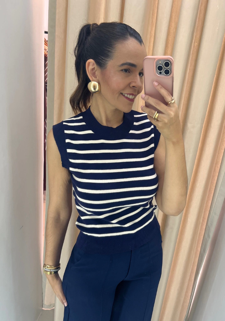 A Blusa Listra S/M é a peça-chave para quem busca conforto e estilo em um só look. Confeccionada em tricot de malha, traz um design suéter listrado que valoriza qualquer produção com um toque despojado e moderno. Ideal para dias mais fresquinhos ou para sobreposições que realçam sua personalidade.