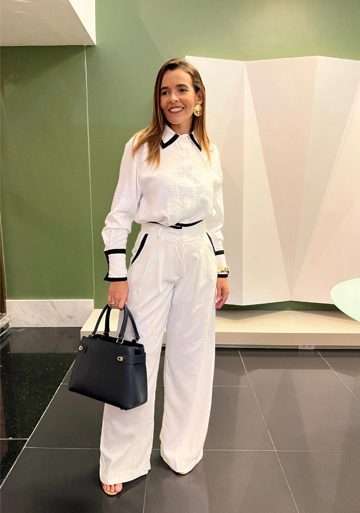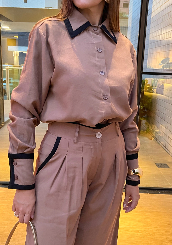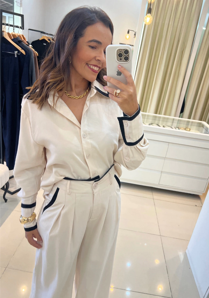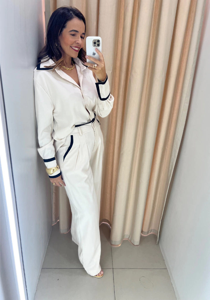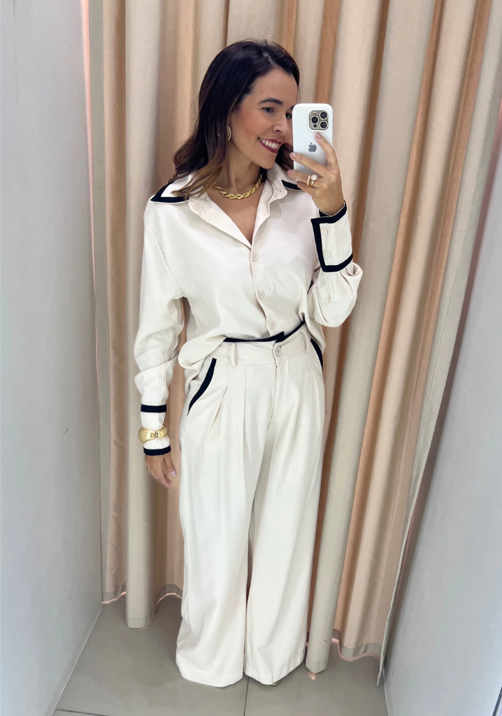 Esta calça pantalona de alfaiataria é perfeita para quem busca estilo e conforto. Com detalhes de viés no cós e no bolso, ela traz um toque sofisticado e contemporâneo ao visual. Ideal para o escritório, eventos sociais ou até mesmo um jantar especial, você irá se sentir confiante e elegante em qualquer ocasião.