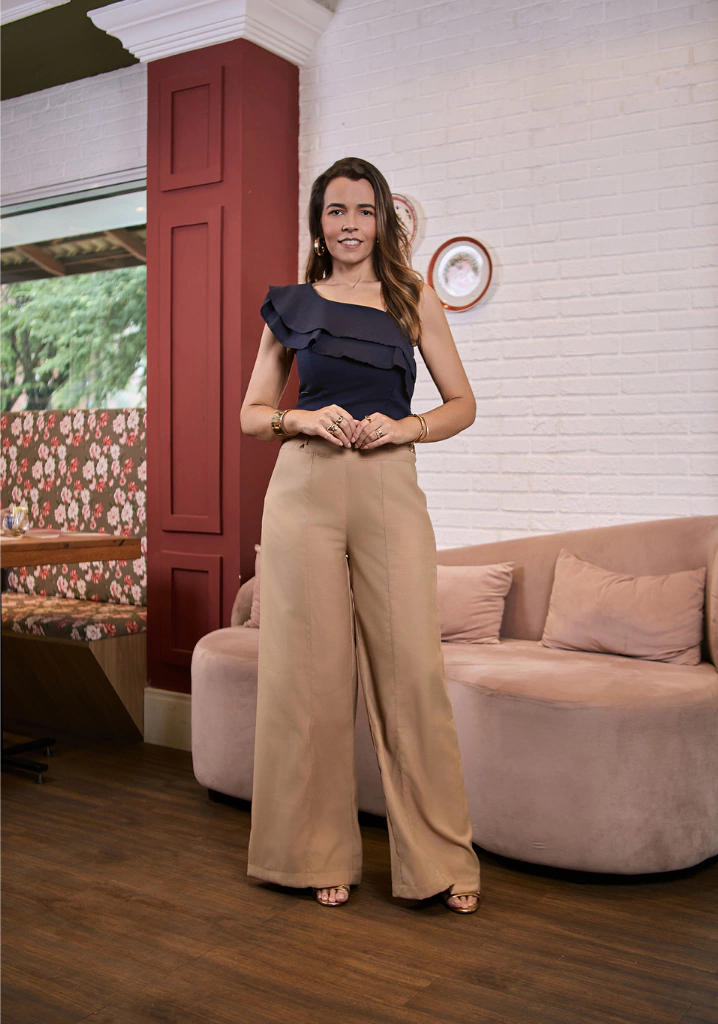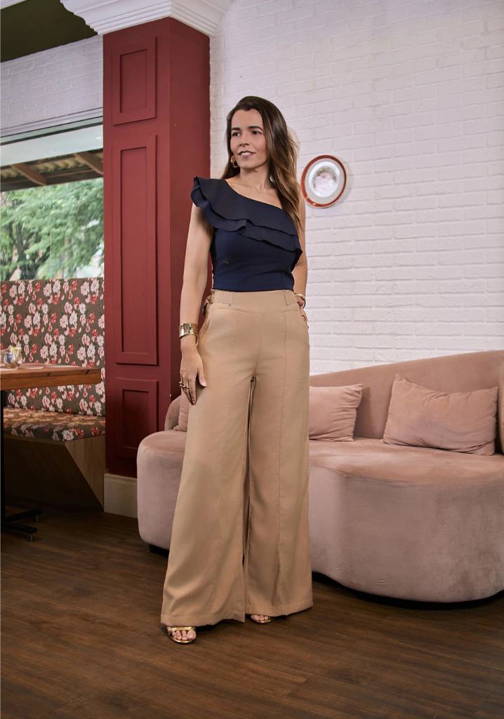 Transforme seu guarda-roupa com a Calça Pantalona Alfaiataria Charlene, uma peça que une conforto e personalidade para as produções do dia a dia. Com um design acinturado, essa calça é super versátil e atemporal, perfeita para diversas ocasiões.