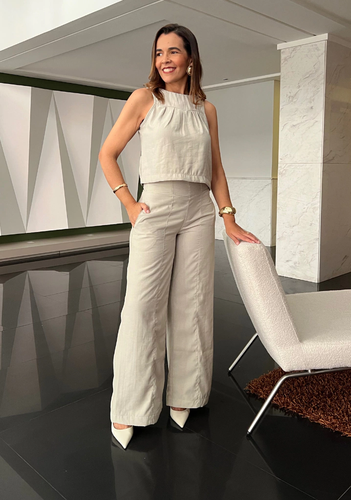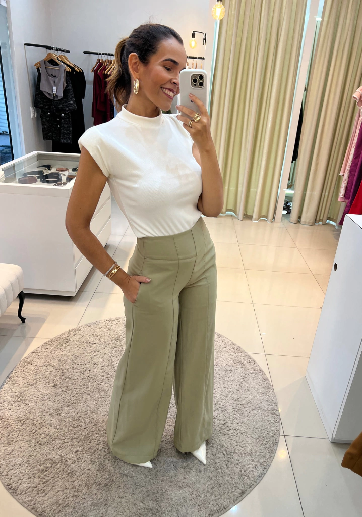 Calça Pantalona Alfaiataria Iane é uma peça confortável e cheia de personalidade para as produções do dia a dia, uma calça pantalona acinturada, super versátil e atemporal.