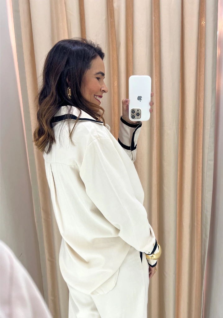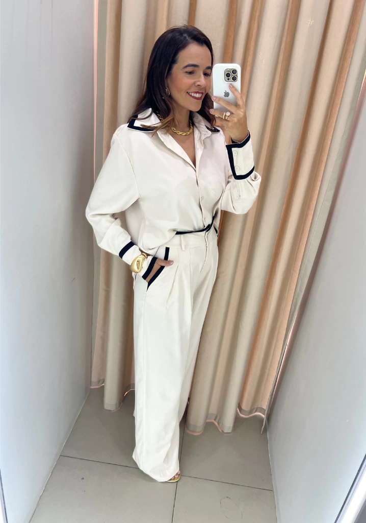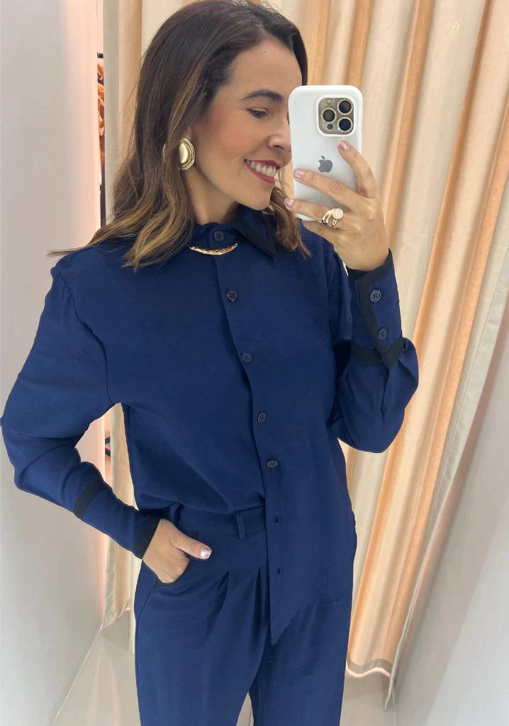 CAMISA ALFA VIES GOLA - A escolha ideal para quem busca sofisticação e conforto. Esta camisa de manga longa com botões é perfeita para compor looks elegantes e casuais. Seu detalhe de vies na gola e no punho traz um toque especial que destaca a peça.