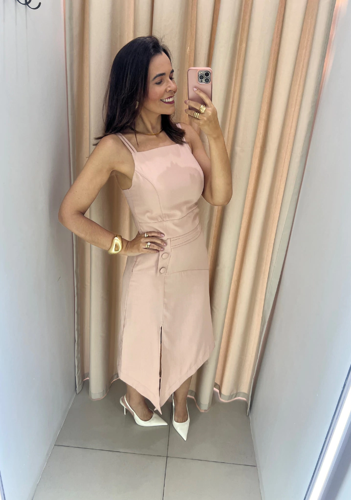 Descubra a Saia Ravena Midi Assimétrica, a peça que une elegância e modernidade. Com uma fenda frontal que destaca o movimento, ela traz botões cobertos decorativos e um zíper lateral para um toque sofisticado e prático. Seu caimento assimétrico valoriza a silhueta, perfeita para quem busca estilo único em qualquer ocasião. Eleve seu look com essa saia que é puro charme e personalidade!