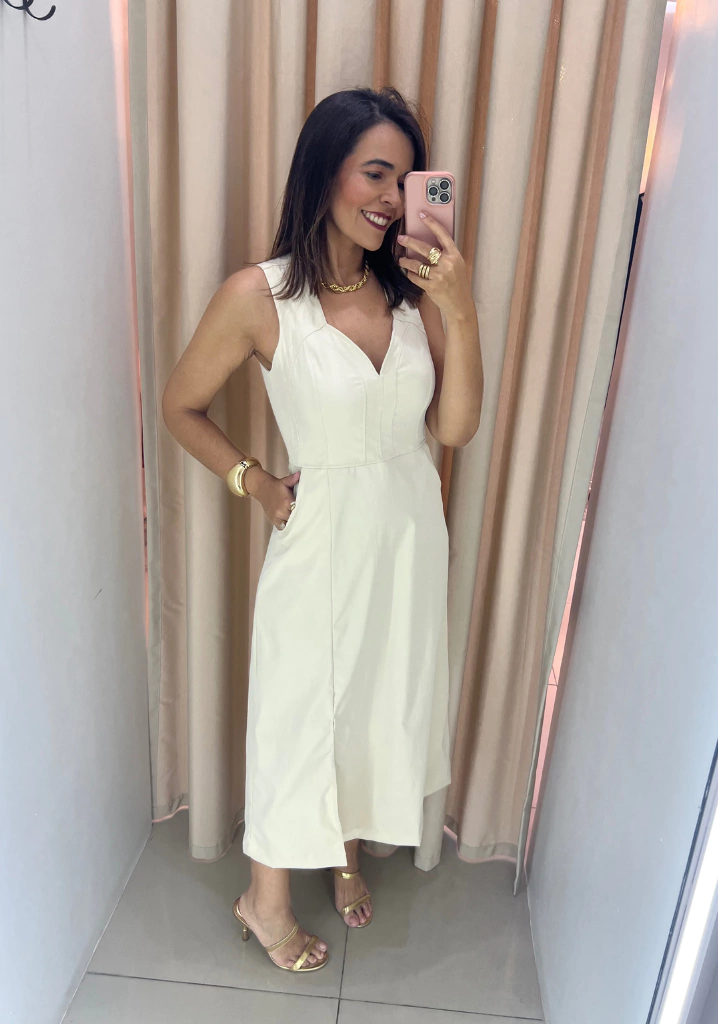 Descubra o Vestido Elaine, a escolha perfeita para quem deseja um look elegante e cheio de charme. Com decote coração acinturado, ele valoriza a silhueta feminina com delicadeza. A saia reta ganha um toque moderno graças à fenda frontal, que adiciona movimento e sofisticação. Ideal para ocasiões especiais ou para transformar o seu dia a dia com estilo único!