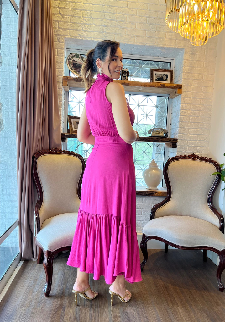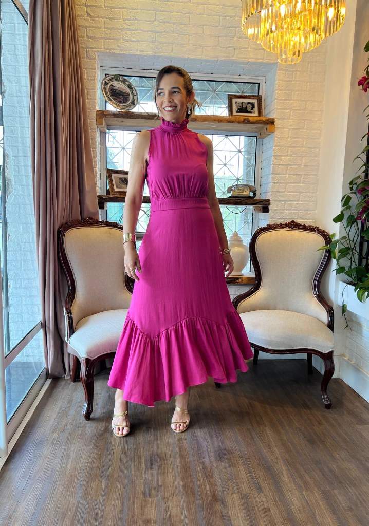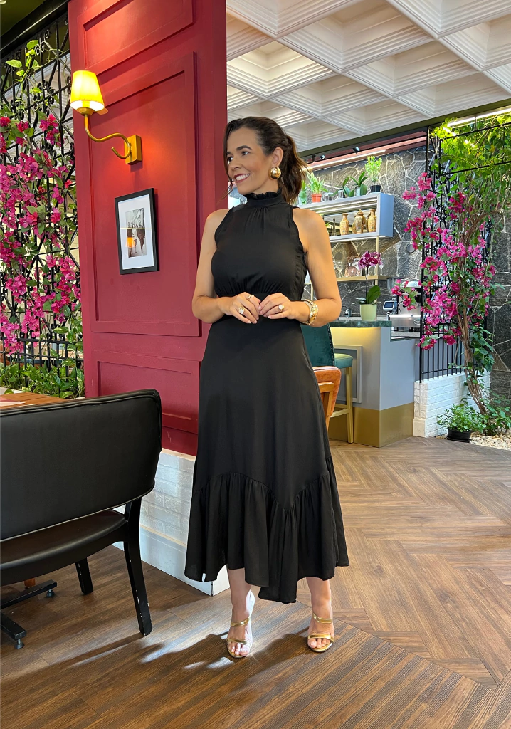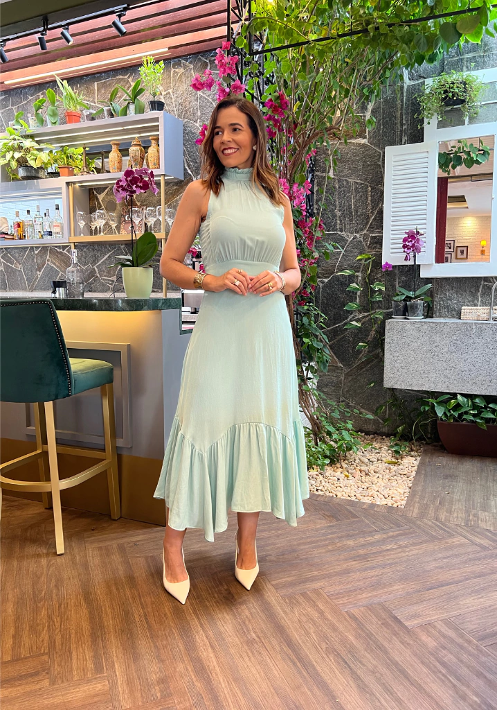 Descubra a sofisticação do Vestido Marina Gola Alta, uma peça que une elegância e conforto com maestria. Seu comprimento midi com fluidez oferece um caimento leve e elegante, perfeito para realçar sua presença em qualquer ocasião.